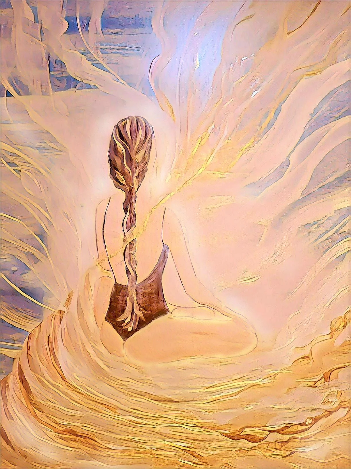 I was inspired via yonder-world dream. This vintage art piece is a representation of my great fondness for mythology, and my deep admiration for our life-sustaining star, the brilliant sun. (May our brilliant and blessed star shine on you, forever and always!)