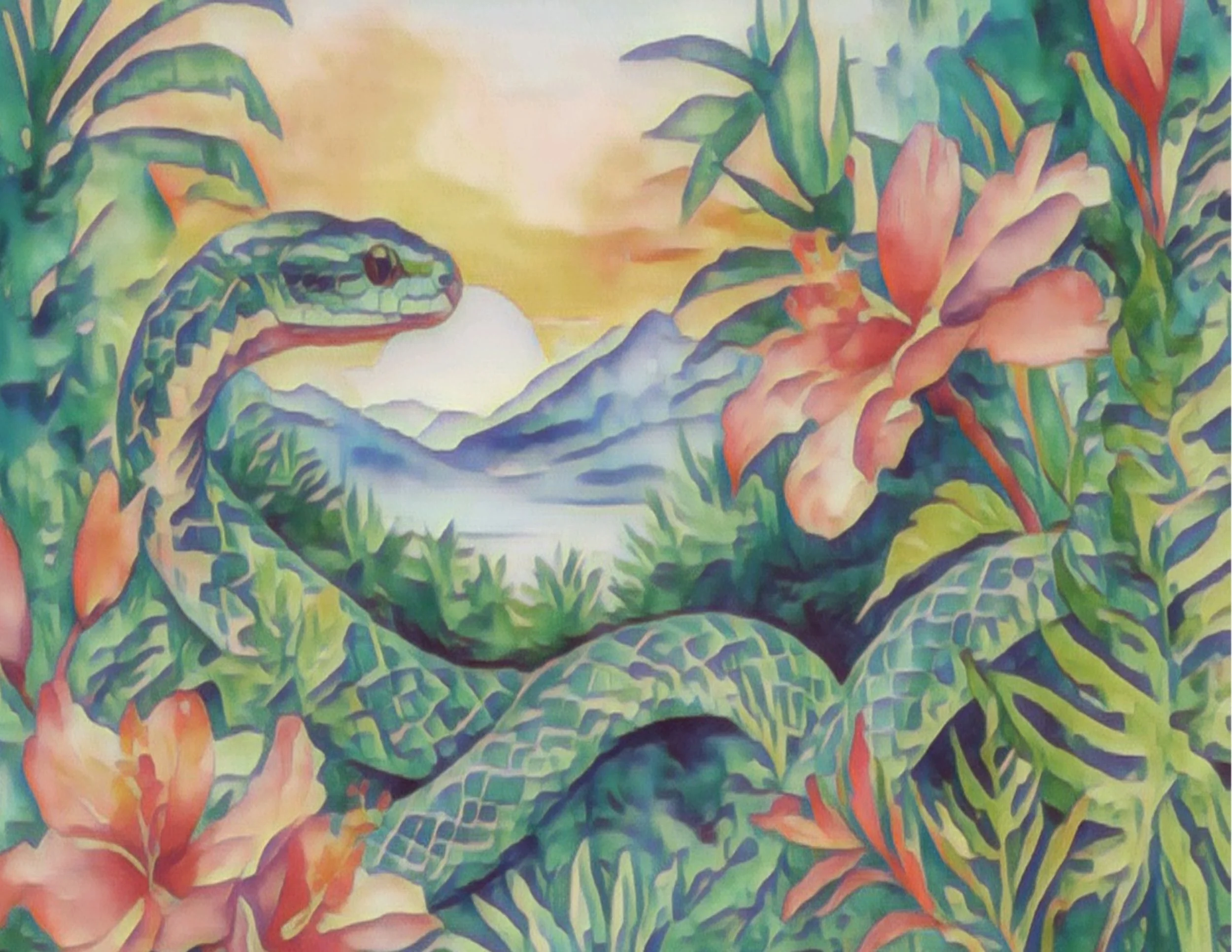 My snake art is a representative symbol of transformation and regeneration. It is an artistic emblem of life force, representing the potential to heal from within and emerge stronger than before. The appearance of the snake spirit animal often marks the beginning or end point in our journey towards growth – when we are called to navigate challenging times with newfound strength. Allow the snake to be your guide on the path of personal transformation and inner healing.